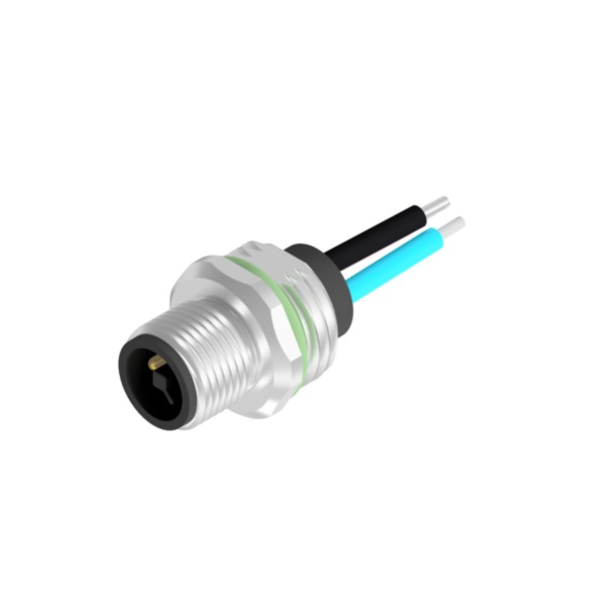RSFM 4B/20 M M12 Data Receptacle Connector: Male, front mount, M12 – mating side, stranded wires – connecting side, 4-pin, B-coded, unshielded, metallic grey housing, 50 V AC / 60 V DC, 4 A