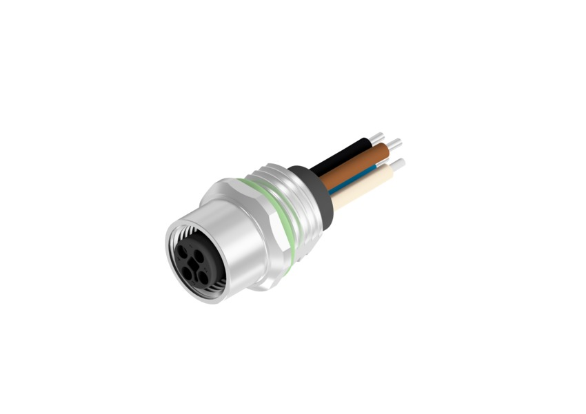 43-02393 SAL-12T-FK4-0,5 M12 T-coded female axial M16x1,5mm 4 pos. front panel mounting, wire termination, 0,5 m