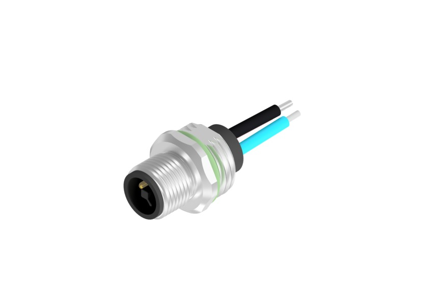 43-02395 SAL-12T-FS4-0,5 M12 T-coded male axial M16x1,5mm 4 pos. front panel mounting, wire termination, 0,5 m
