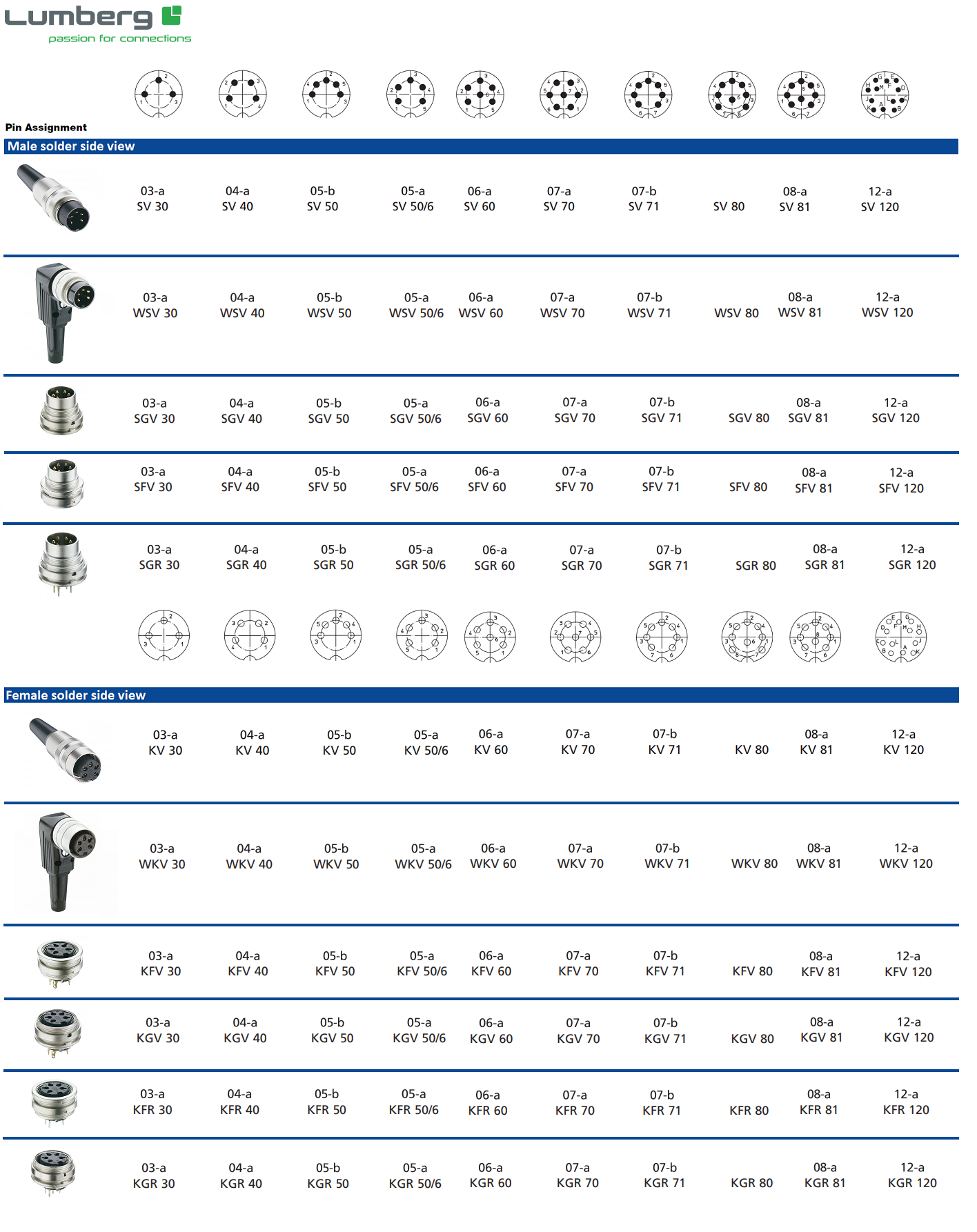 WSV 120 Series 03 field attachable connector IP40, 12 poles male 90°, wire section 0,25mmq, cable diameter 6mm, solder termination