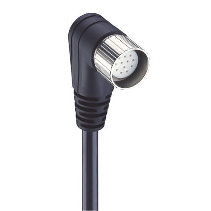RKWUE 19-242 – M23 Power Single-Ended Cordset: Female, angled, 19-pin(18+PE), black body, 120 V AC/DC, 16×8 A + 2×10 A ; PUR black cable, 16×0.5 mm² + 3×1.0 mm²