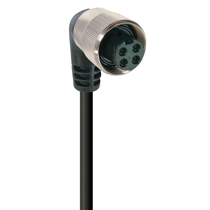 RKWP 4-803 – Mini Power Single-Ended Cordset: 1 3/8″, female, angled, 4-pin(3+PE), black body, 600 V, 25 A; TPE black cable, 10 AWG