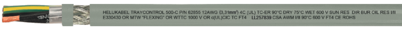 HELUKABEL® TRAYCONTROL® 500-C is a flexible, screened and oil-resistant control cable. The special combination of TC-ER, PLTC-ER and ITC-ER allows this cable to be used as a connecting cable for industrial plant and machinery in accordance with NFPA 79. Approved for open, unprotected installation in cable trays to the machine. Its outstanding oil resistance (OIL RES I & II) guarantees a long service life for industrial applications in dry, damp and wet environments. Recommended applications: production lines, bottling plants, machine construction, switch cabinets, conveyor systems, packaging machines, automotive industry.